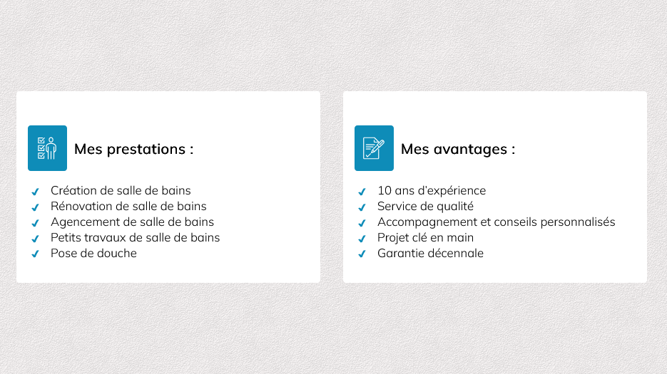 Quels que soient vos besoins, je transformerai votre salle de bains en une pièce esthétique, confortable et fonctionnelle.